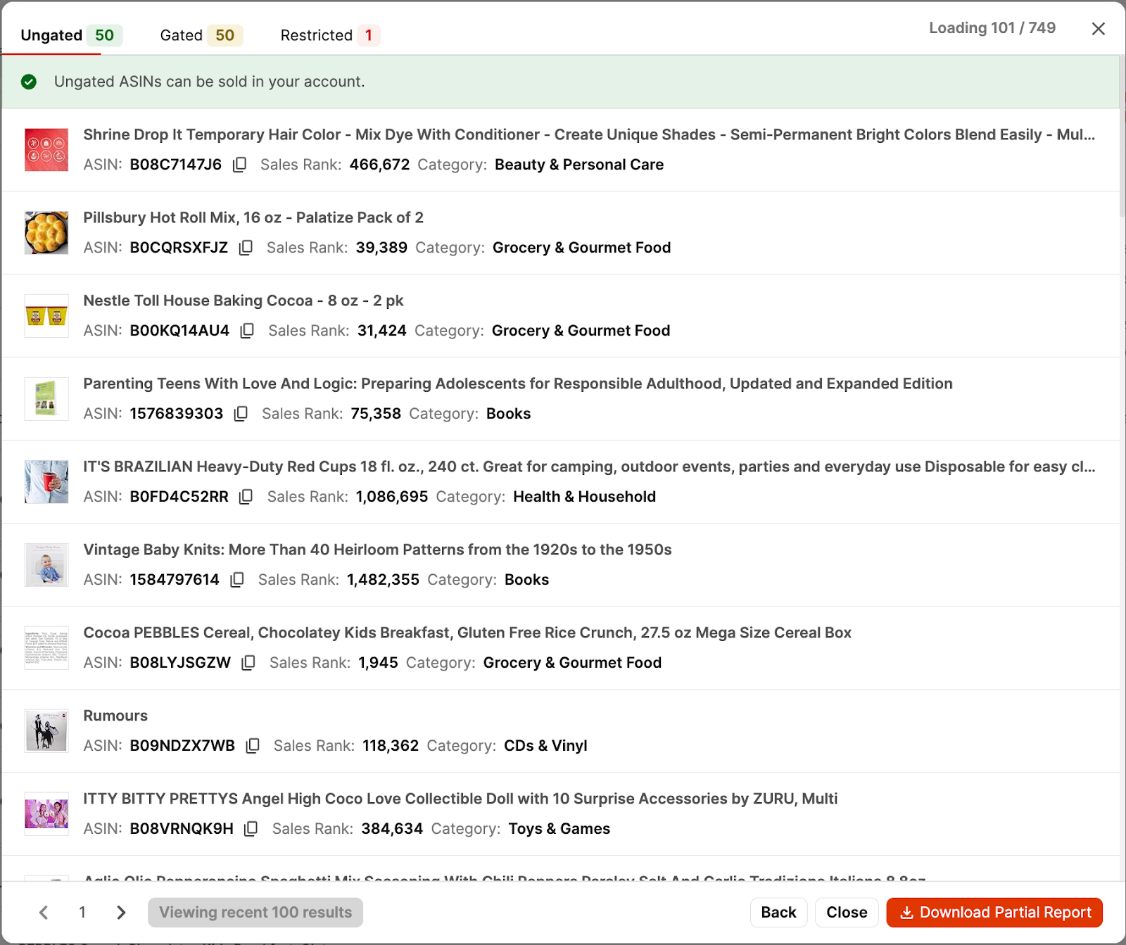 Using the Boxem Bulk Ungating tool, you can import a list of ASINs or use the suggested list of 750 brands. It will apply for up to five brands per second when you run this scan, and automatically reports the brands that were able to be automatically un-gated for free.